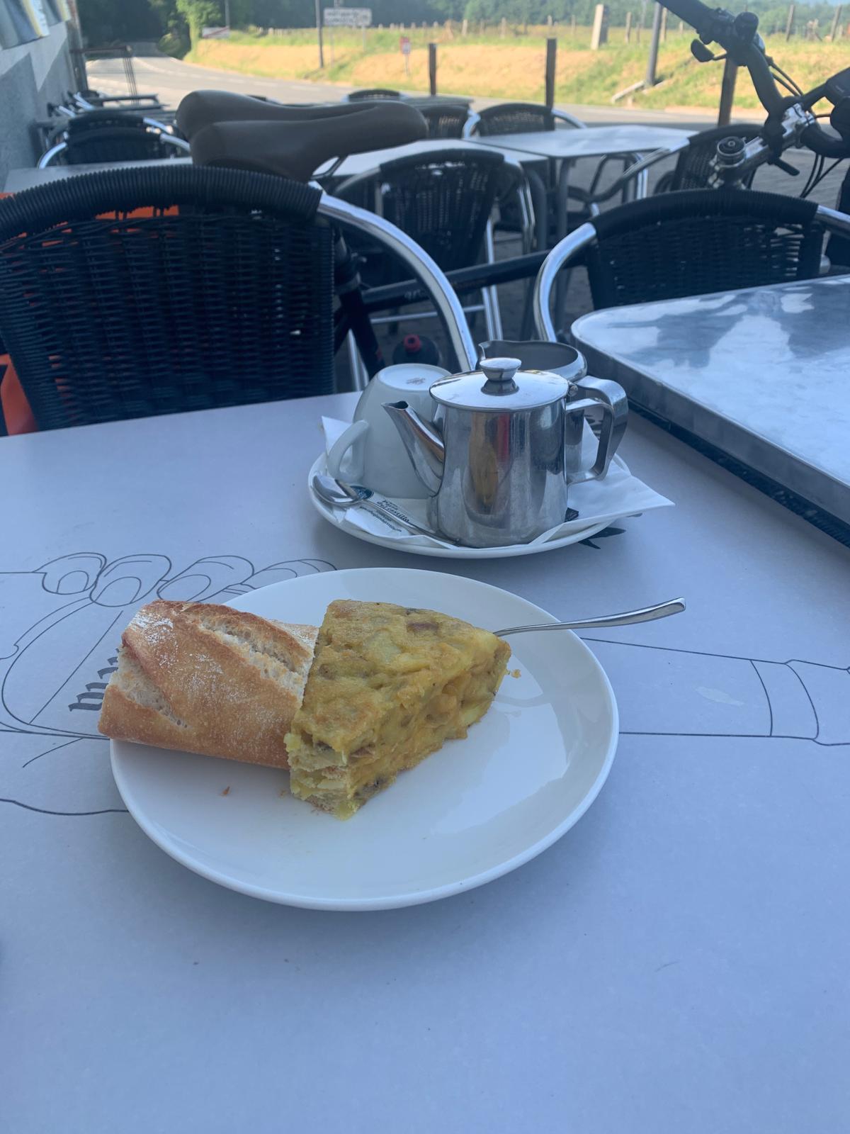 Leon isn’t a city I’d hurry back to, and the roads out of town were unforgiving for such an early start. Soon though we were on the straights, reaching Hospital de Orbison for breakfast. It was really chilly since for only the second time I wore a cycling coat.