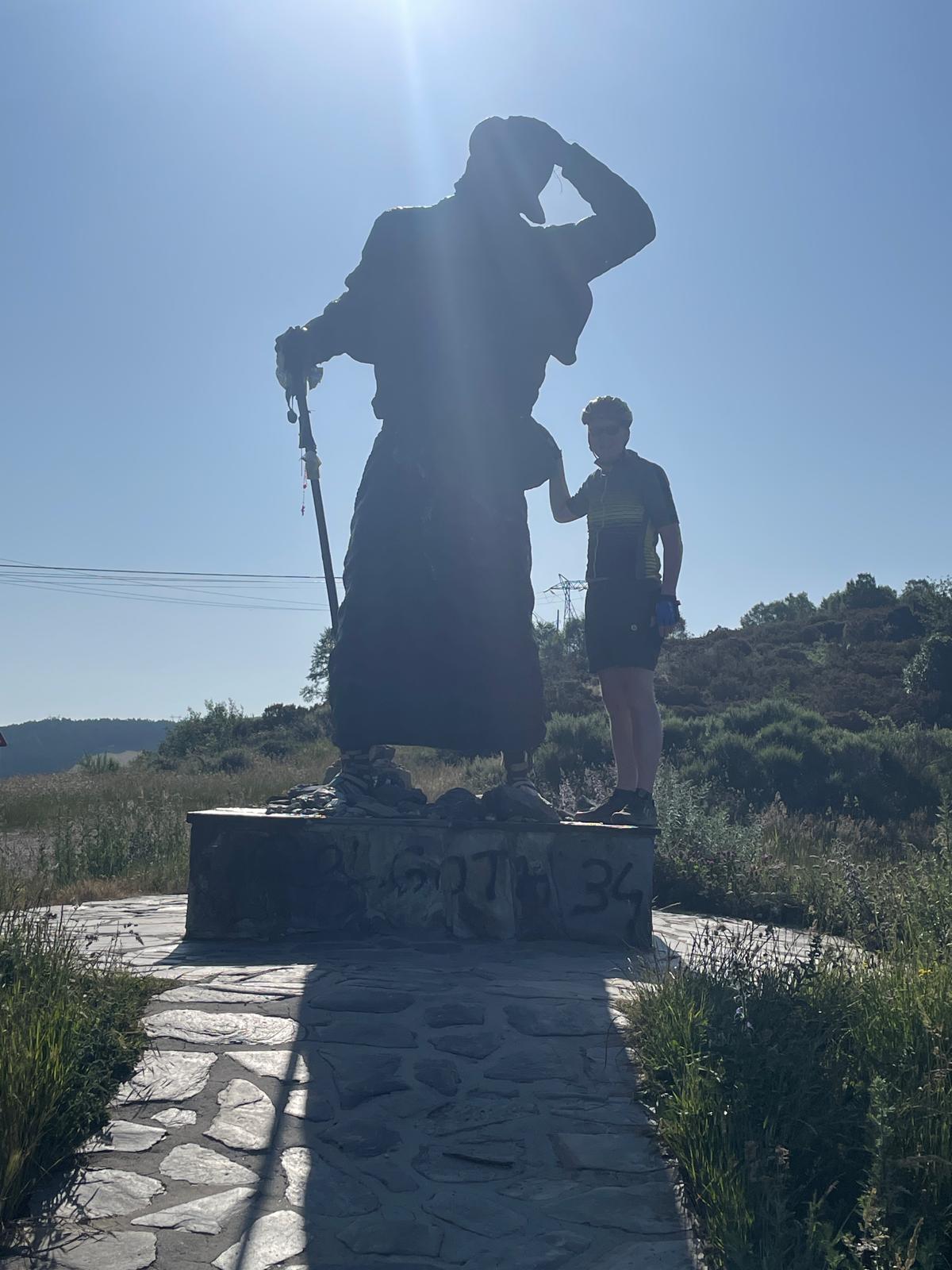 We completed the rest of the climb from yesterday setting off at 6.30. Within a short time we reached the highest peak (I think) on the Camino, and began our decent into Ponferrada some 15 miles away. After a mile we stopped at a significant passing point on the Camino, at Cruz de Ferro, were we placed a stone and had a moment to reflect how far we’d come. It was a steep decent from there on with the bakes on all the way. With the windchill on the decedent, in the shadows of sun it was very cold, three layers on! We had breakfast in Ponferrada, then in Carracedelo had the brake pads checked over, the mechanic was assuring they’d be more than fine for the final stretch to Santiago.